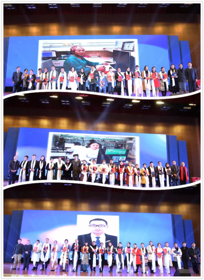 每年的先進集體和個人表彰是本次大會的重點,李君院長宣講了今年"評優(yōu)選先”的規(guī)則:以工作成績?yōu)橐罁?jù),杜絕人情票,通過申報審核的方式評選。隨后,李院長宣讀了2018年先進集體和優(yōu)秀個人名單,董事長王斌率院領導為先進集體和優(yōu)秀個人獻上哈達并頒發(fā)榮譽證書、獎杯和獎金。
