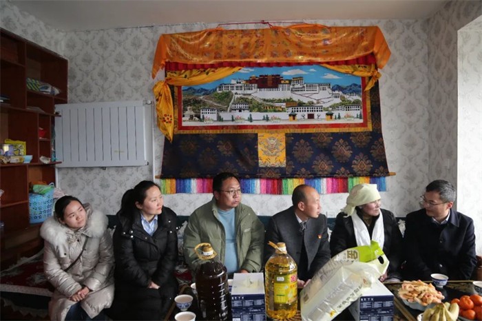 隨后,一行人來到恩惠苑社區(qū)。作為拉薩市城關(guān)區(qū)易地扶貧搬遷安置點,這里居住著來自城關(guān)區(qū)、林周縣和空港新區(qū)的761戶接近4000人。根據(jù)自治區(qū)文明辦要求,西藏阜康醫(yī)療股份有限公司作為自治區(qū)文明單位對該社區(qū)進行掛點幫扶,在社區(qū)的安排下,阜康醫(yī)療對德瓊和斯曲兩戶困難家庭進行了幫扶。