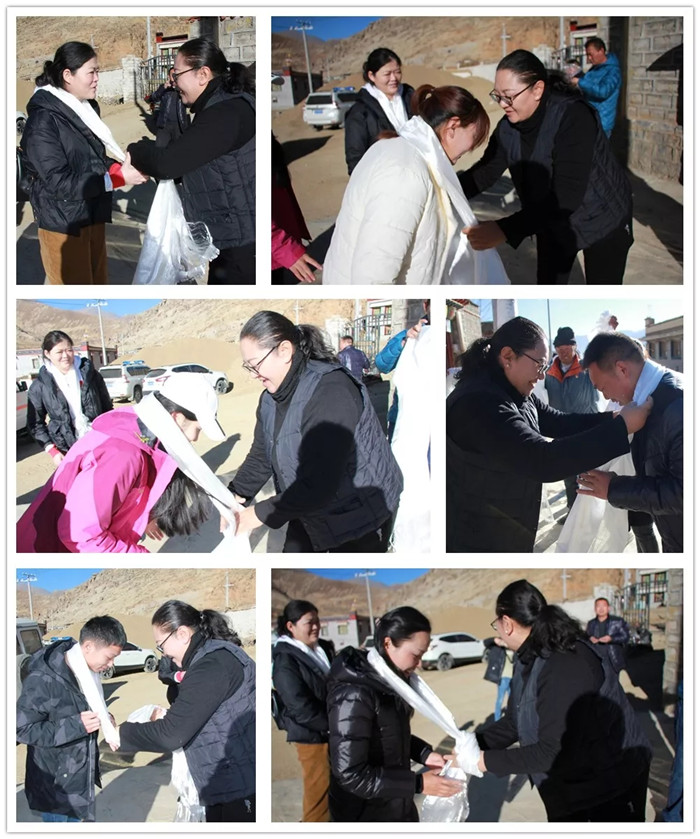 嘎布村駐村工作隊(duì)隊(duì)長為醫(yī)療隊(duì)獻(xiàn)上哈達(dá)