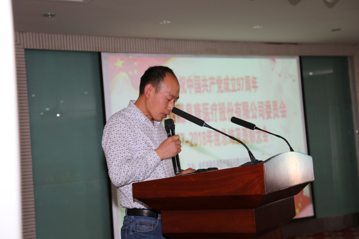 6月29日,"慶祝中國共產(chǎn)黨成立97周年暨中共西藏阜康醫(yī)療股份有限公司委員會2017-2018年度總結及表彰大會”在阜康婦產(chǎn)兒童分院4樓會議室隆重召開。公司黨委書記王斌,區(qū)黨委組織部組織四處(兩新工委辦公室)負責人沈策,公司黨委副書記陳彬、黨委委員劉瀟瀟、劉連福、楊國洪及全體黨員參加會議。
