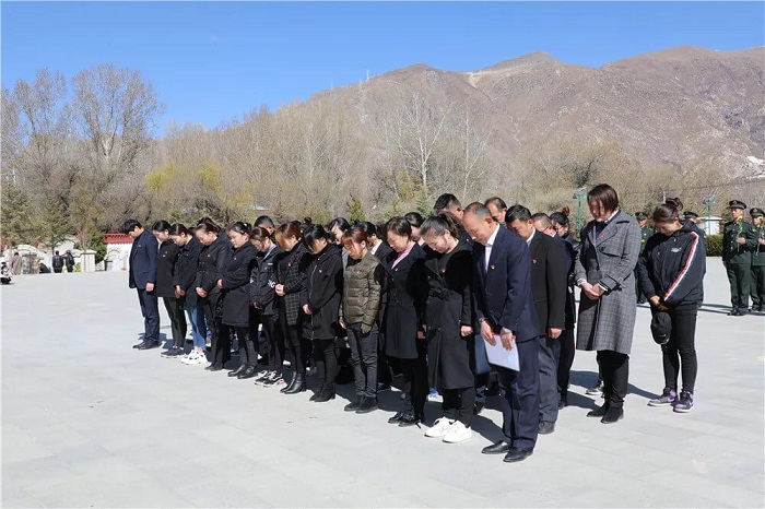 儀式結(jié)束以后,全體黨員整齊肅穆地走過(guò)紀(jì)念碑,懷著對(duì)革命先烈的崇敬之情瞻仰了烈士陵墓,同時(shí)聽(tīng)取引導(dǎo)人員關(guān)于革命烈士的事跡介紹。在烈士英名墻下,大家仔細(xì)瀏覽烈士的名字;在領(lǐng)導(dǎo)干部的楷??追鄙镜哪贡埃蠹疑钌罹瞎磉_(dá)對(duì)革命先烈的崇敬與追思;面對(duì)一排排長(zhǎng)眠的革命烈士,大家深切感受黨的事業(yè)所經(jīng)歷的艱辛與付出的巨大犧牲,深深思考作為一名新時(shí)代的中國(guó)共產(chǎn)黨員應(yīng)該如何肩負(fù)起歷史賦予的使命,在黨中央和區(qū)黨委的堅(jiān)強(qiáng)領(lǐng)導(dǎo)下,為西藏的穩(wěn)定發(fā)展、為中華民族的偉大復(fù)興貢獻(xiàn)自己的力量,堅(jiān)決做一名無(wú)愧于黨和人民、無(wú)愧于時(shí)代的合格共產(chǎn)黨員。